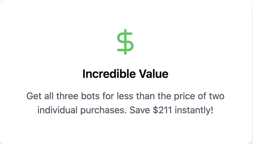Yes! Whether you choose individual bots or the bundle, it's a one-time payment with lifetime access. No recurring fees ever.